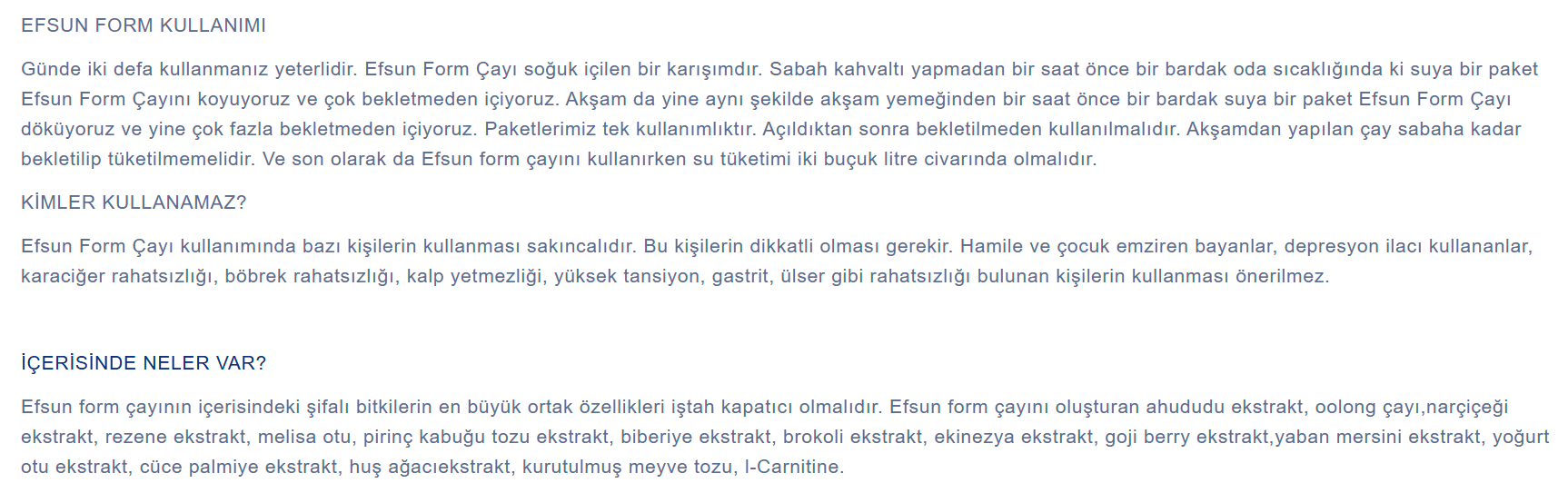 Akşamdan yapılan çay sabaha kadar bekletilip tüketilmemelidir ve son olarak da Efsun form çayını kullanırken su tüketimi iki buçuk litre civarında olmalıdır.